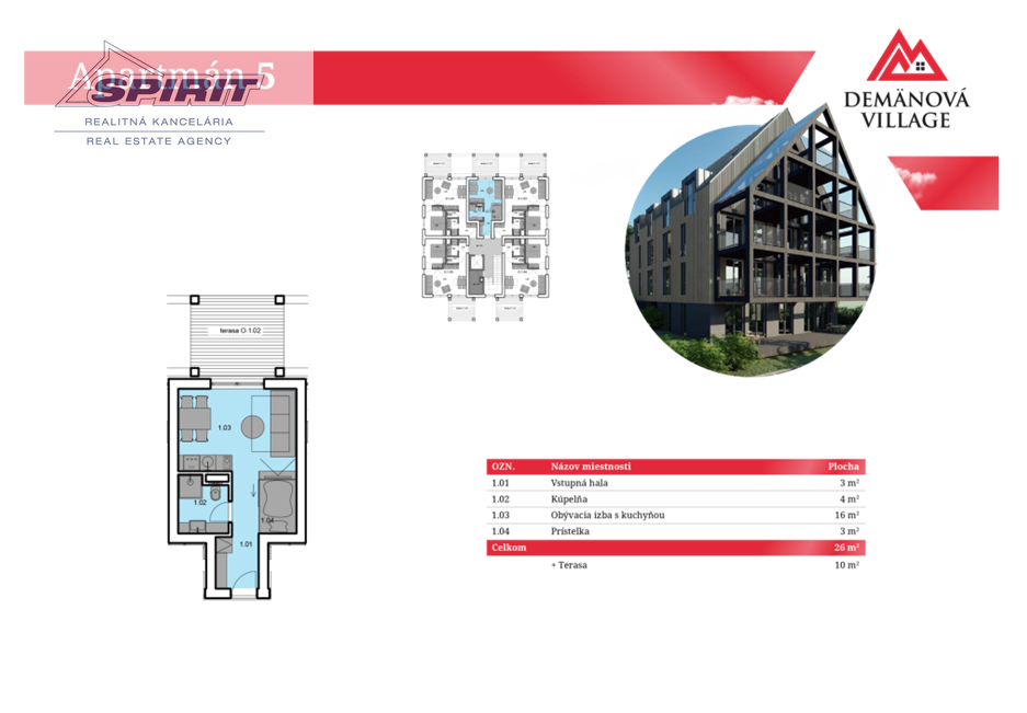 RK SPIRIT Vám ponúka na predaj dokončený 1-izbový apartmán, ktorý sa nachádza na 1. poschodí apartmánového domu TATRANEC v rezorte Demänová.