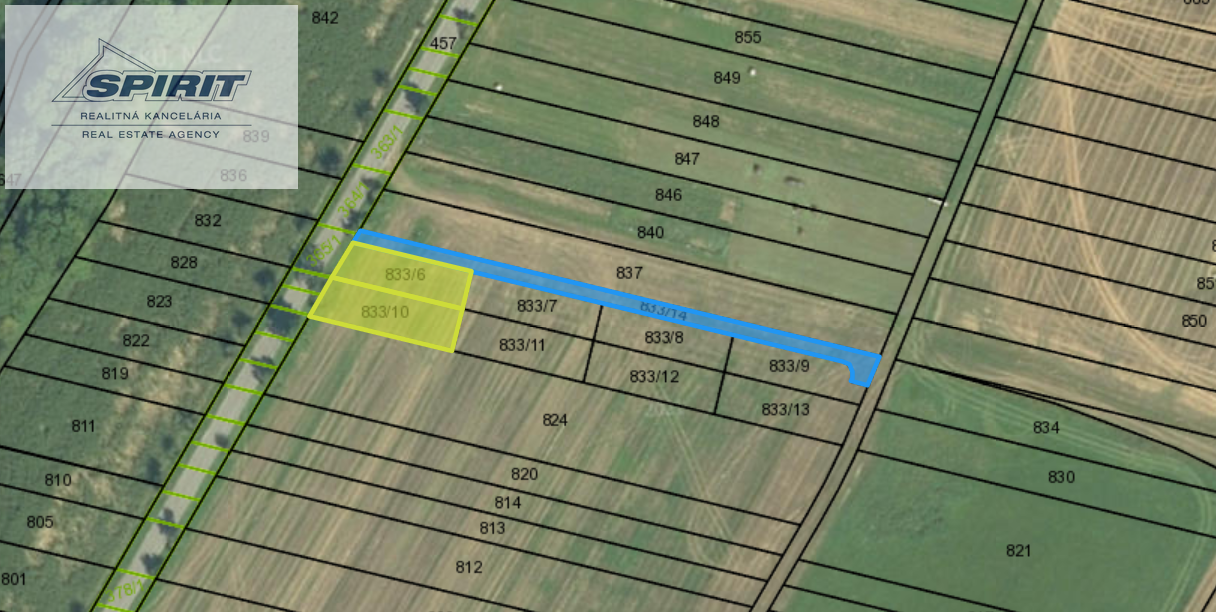 Dostupné siete: voda a plyn (vedú pozemkom), napojenie na elektrinu nutné doriešiť